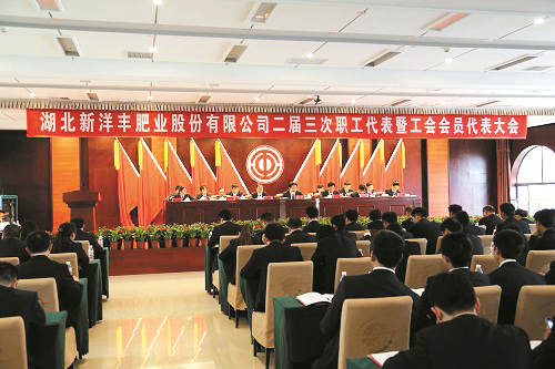 本網(wǎng)訊 5月4日,湖北新洋豐肥業(yè)股份有限公司在洋豐(荊門)培訓(xùn)中心隆重召開二屆三次職工代表暨工會會員代表大會,215名職工代表及11名列席代表參加會議。