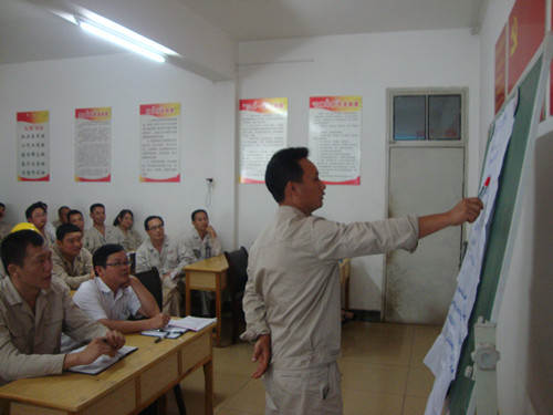 本網(wǎng)訊 8月29日,硫酸鉀廠開展廠級班組建設(shè)“兌標(biāo)課”活動。