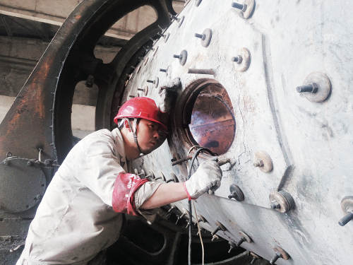 去年冬天,磷酸車間因球磨機故障,導(dǎo)致磨不出礦漿,磷酸產(chǎn)量上不去,直接影響磷銨生產(chǎn)線的正常生產(chǎn),必須停車緊急搶修。當(dāng)時正值寒冬,氣溫極低,可以說是滴水成冰,球磨機雖然不在露天,但卻也正處在風(fēng)口上,刺骨的寒風(fēng)吹在臉上就像刀子在割。但裴永鋒沒有絲毫猶豫,第一個沖進球磨機內(nèi)開始揀選清理鋼球鋼鍛。一旁的員工默默地看在了眼里,不用他發(fā)話就紛紛加入了清理的行列,一起甩開膀子干了起來。只見現(xiàn)場是揀的揀,搬的搬,送的送,接的接,清的清……一個個臉被凍得通紅,手完全被凍僵,汗水把衣服都濕透了,但沒有一個人抱怨,更沒有一個人退縮。不一會兒幾十噸鋼球鋼鍛被迅速清理完畢,為維修工的搶修贏得了寶貴的時間。