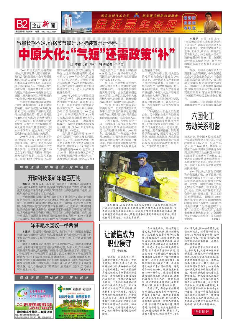 經(jīng)過兩個月的試運(yùn)行,荊門市洋豐中磷肥業(yè)有限公司通過改變磷酸尾氣洗滌方式,使氟水得到充分回收利用,既有利于提高產(chǎn)品質(zhì)量,又有利于環(huán)境保護(hù),產(chǎn)生了良好的經(jīng)濟(jì)效益和社會效益。