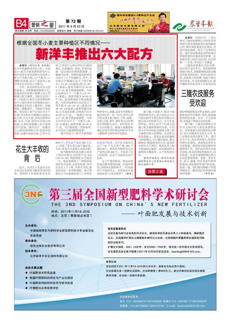 據(jù)中國農(nóng)大·新洋豐新型肥料研發(fā)中心透露,油菜專用肥配方隨后將出爐。在一年內(nèi),該中心將分別完成水稻、棉花、玉米、蔬菜、水果、甘蔗、茶葉、煙葉等大宗作物的專用肥配方設(shè)計(jì)。屆時(shí)將有30個(gè)左右的配方,能極大地覆蓋和滿足全國不同作物品種針對(duì)不同土壤和地力條件的養(yǎng)分需求。