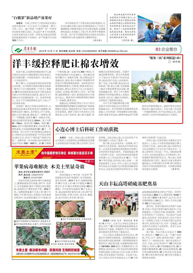秋高氣爽,正是棉花秋桃掛枝時(shí)節(jié),湖北荊州公安縣洋豐緩控釋肥示范田里成片成片的棉花像一片綠色的海洋,預(yù)示著又一個(gè)豐收的季節(jié)。