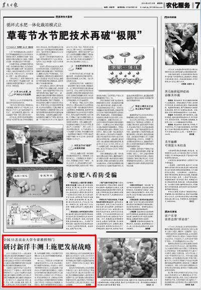 中國農大與新洋豐肥業(yè)于2010年10月聯合成立了“中國農大-新洋豐新型肥料研發(fā)中心”,從2011年起聯手打造全國測土配方施肥示范網絡,3年多來,在全國已經建起測土配方施肥示范基地18個,設計配方74個,涵蓋水稻、棉花、油菜、花生、甘蔗、馬鈴薯、香蕉、蔬菜、蘋果、玉米等20種,作用示范效果十分顯著,與傳統(tǒng)施肥習慣比,大田作物可平均增收121元/畝,經濟作物增收更加明顯,達1000~2000元以上。
