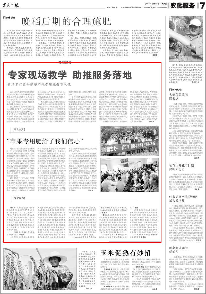 洋豐蘋果專用肥如15-14-16+TE,是我們根據(jù)測土分析結(jié)果,確定土壤供肥能力,根據(jù)果樹不同時(shí)期對養(yǎng)分的不同需求,通過大量田間試驗(yàn)制定的配方肥,測產(chǎn)數(shù)據(jù)顯示,蘋果專用配方肥能提高蘋果品質(zhì),真正實(shí)現(xiàn)增產(chǎn)增收,新洋豐也是一家負(fù)責(zé)任的大企業(yè),這是我們合作的基礎(chǔ),大家可以相信我們跟新洋豐的技術(shù)實(shí)力和服務(wù)能力?!綎|農(nóng)業(yè)大學(xué)園藝科學(xué)與工程學(xué)院教授、國家蘋果產(chǎn)業(yè)體系成員、農(nóng)業(yè)部測土配方施肥專家組成員姜遠(yuǎn)茂